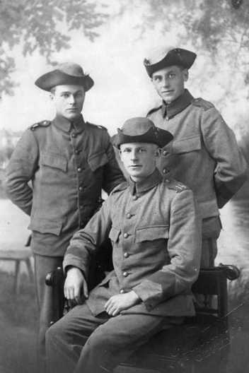 | Underst ser man Anton Andreasson och ovan till v Elvid Fernlund och t h Adolf Svensson omkring år 1918 |